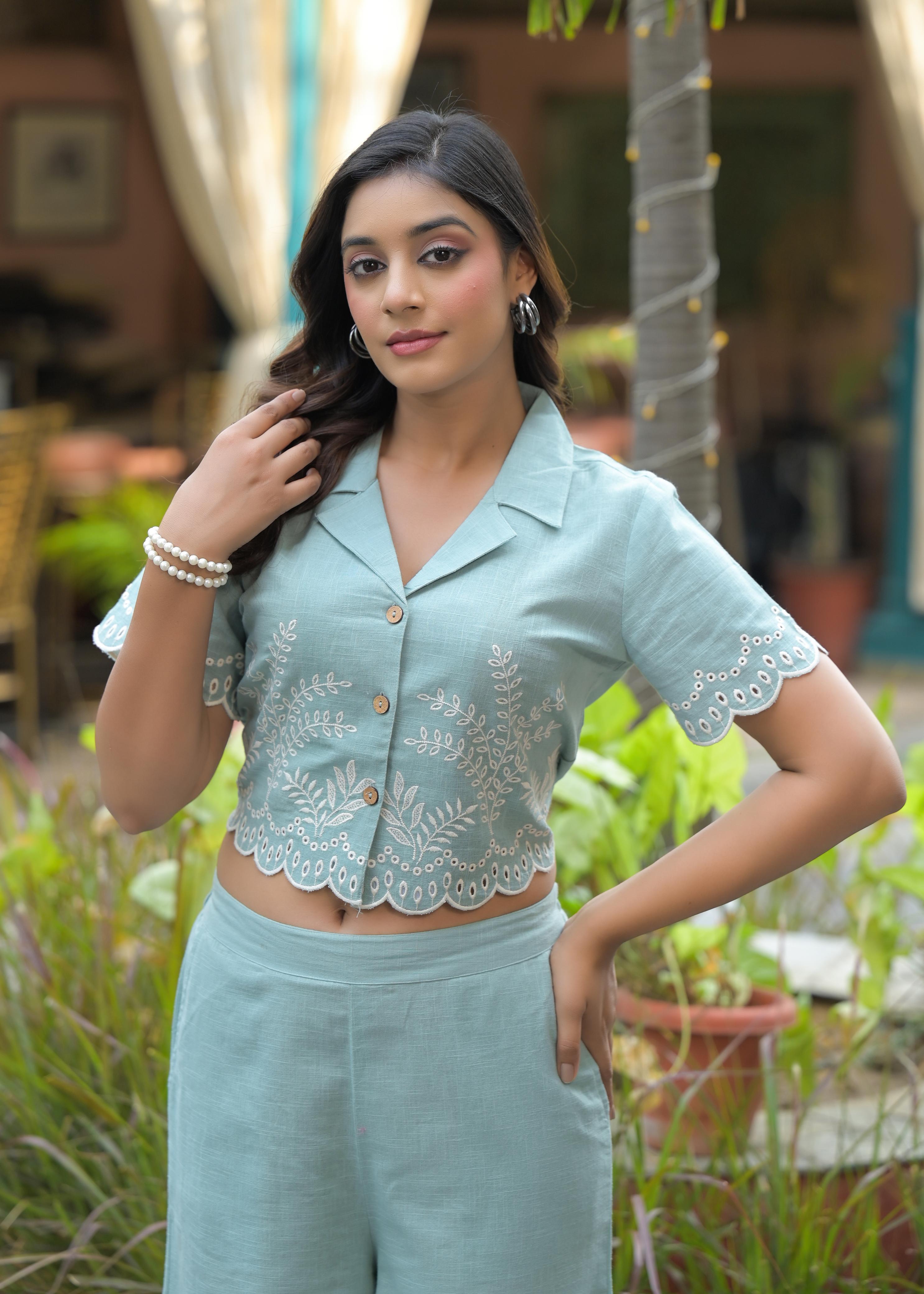 Smart applique work co ord set in blue