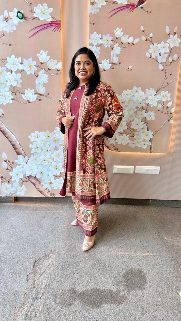 Super smart sleeveless cotton kurta paired with palazzo and a jacket ! Premium article