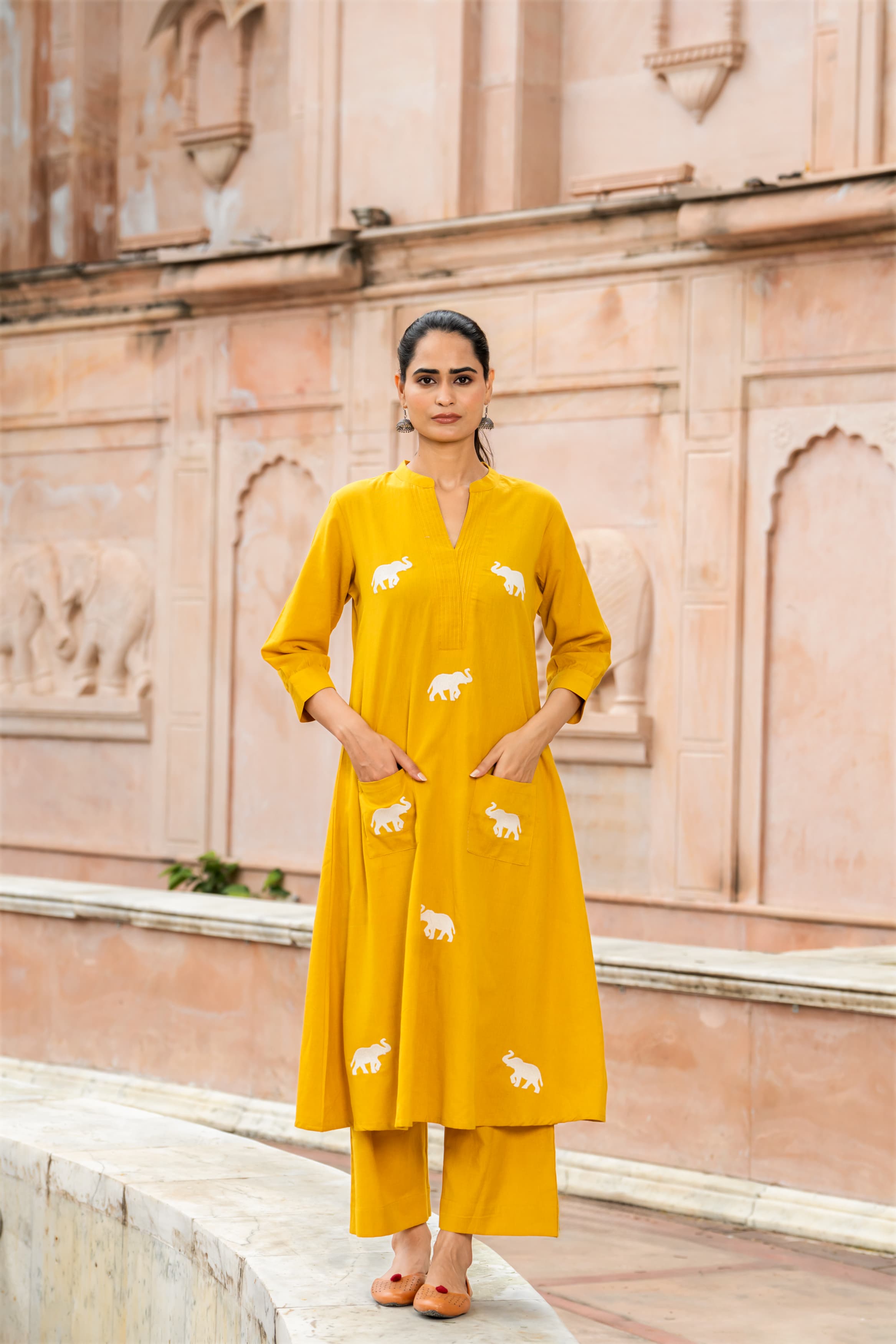 Premium cotton V neck applique work cotton kurta pant