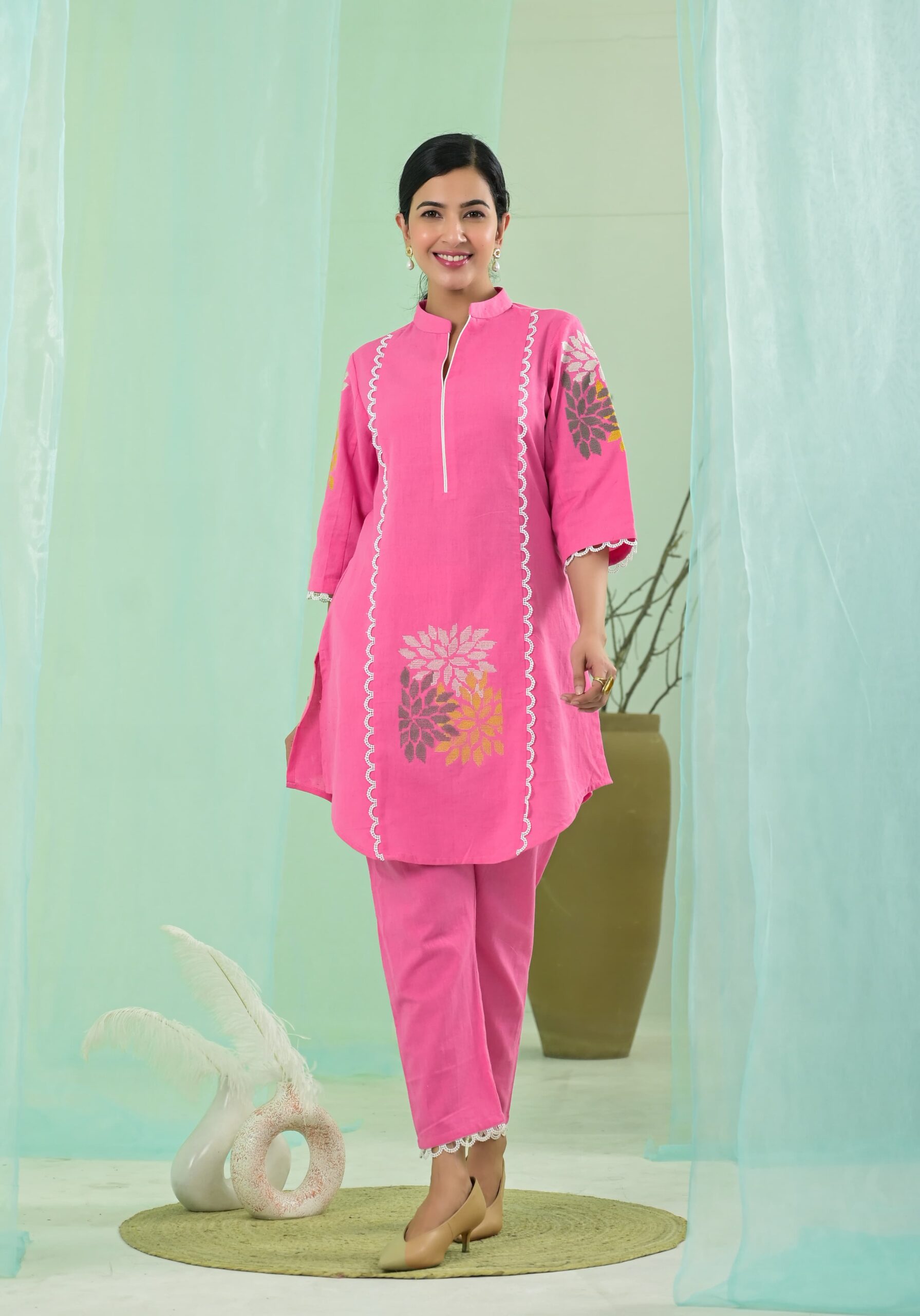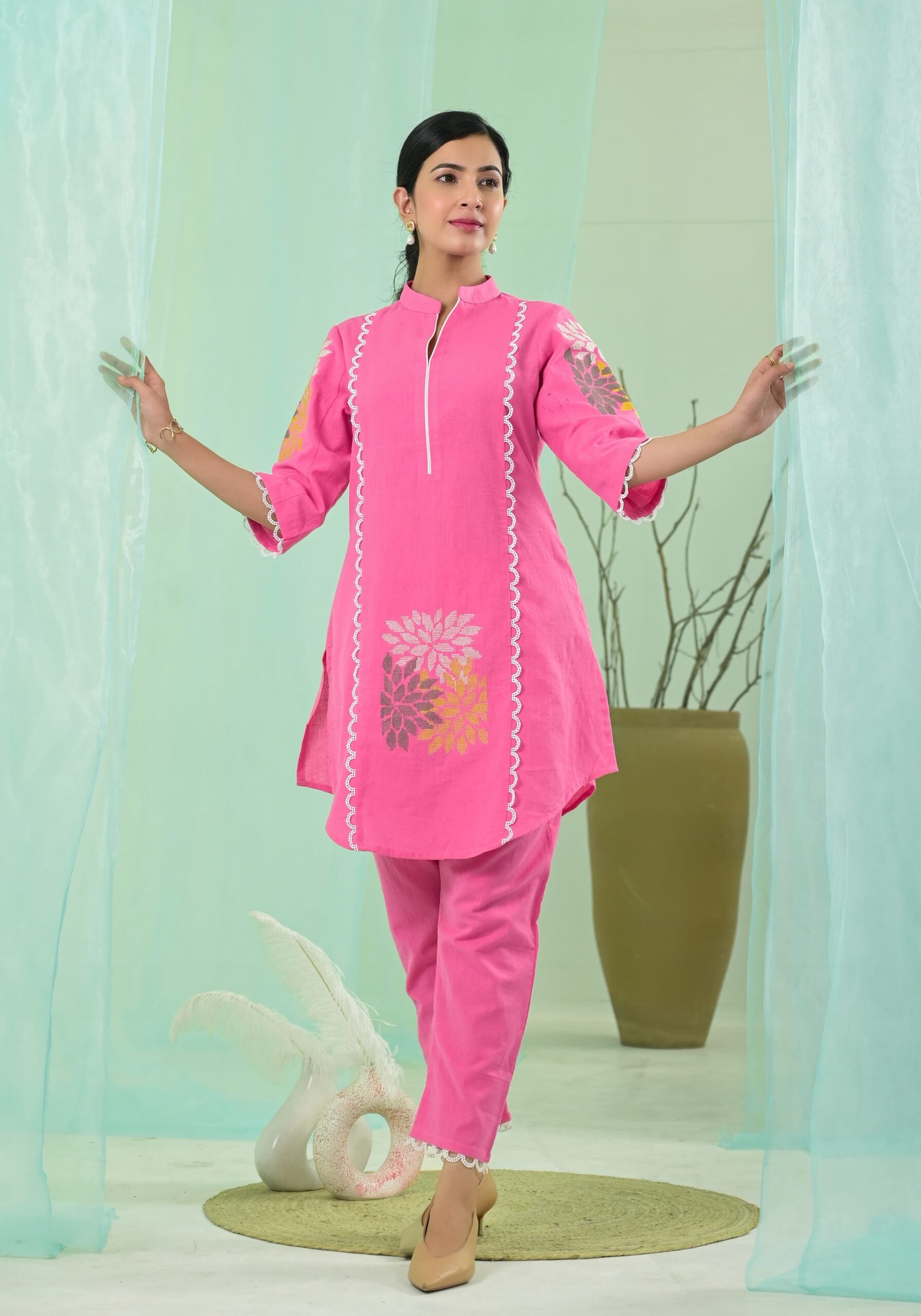 Premium pure cotton embroidered co ord set