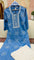 Blue embroidered cotton kurta paired with Shifli pants and shiffon