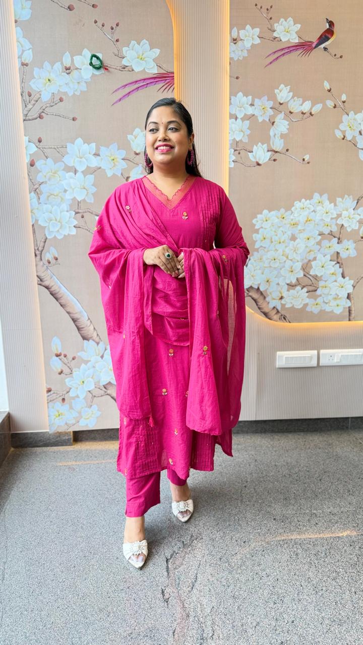 Silly cotton with lining n embroidery full suit set (comfort fit)