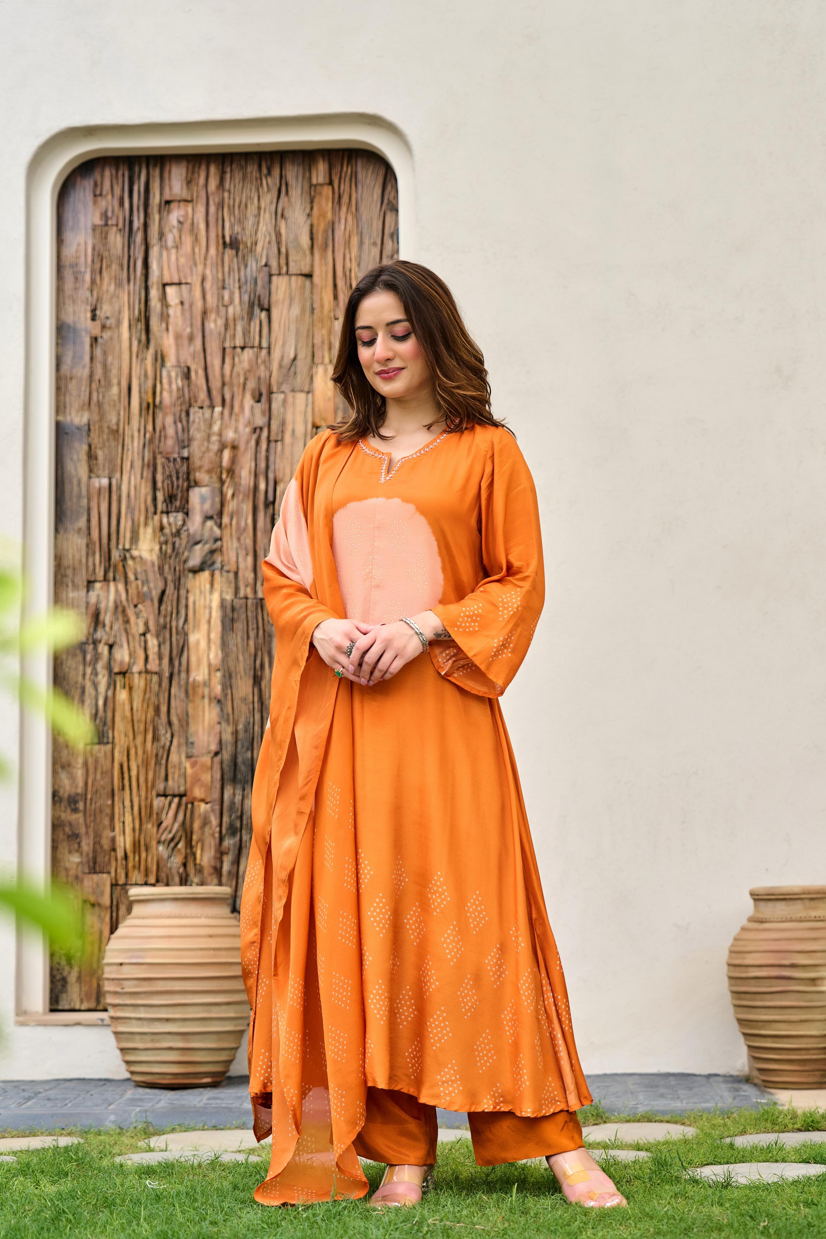 Super smart Mul silk designer suit set in orange