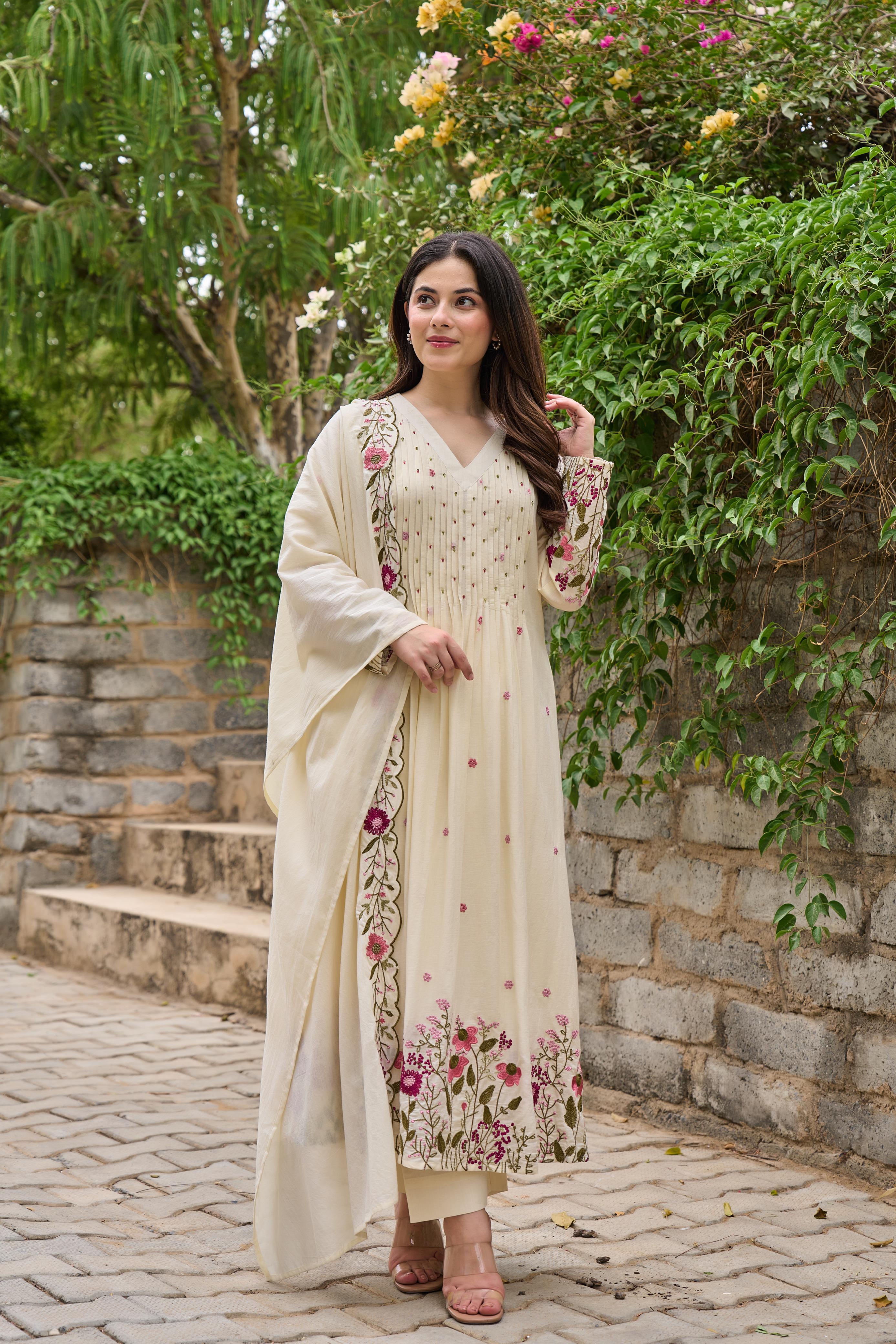 Premium Mul cotton fully embroidered full suit set