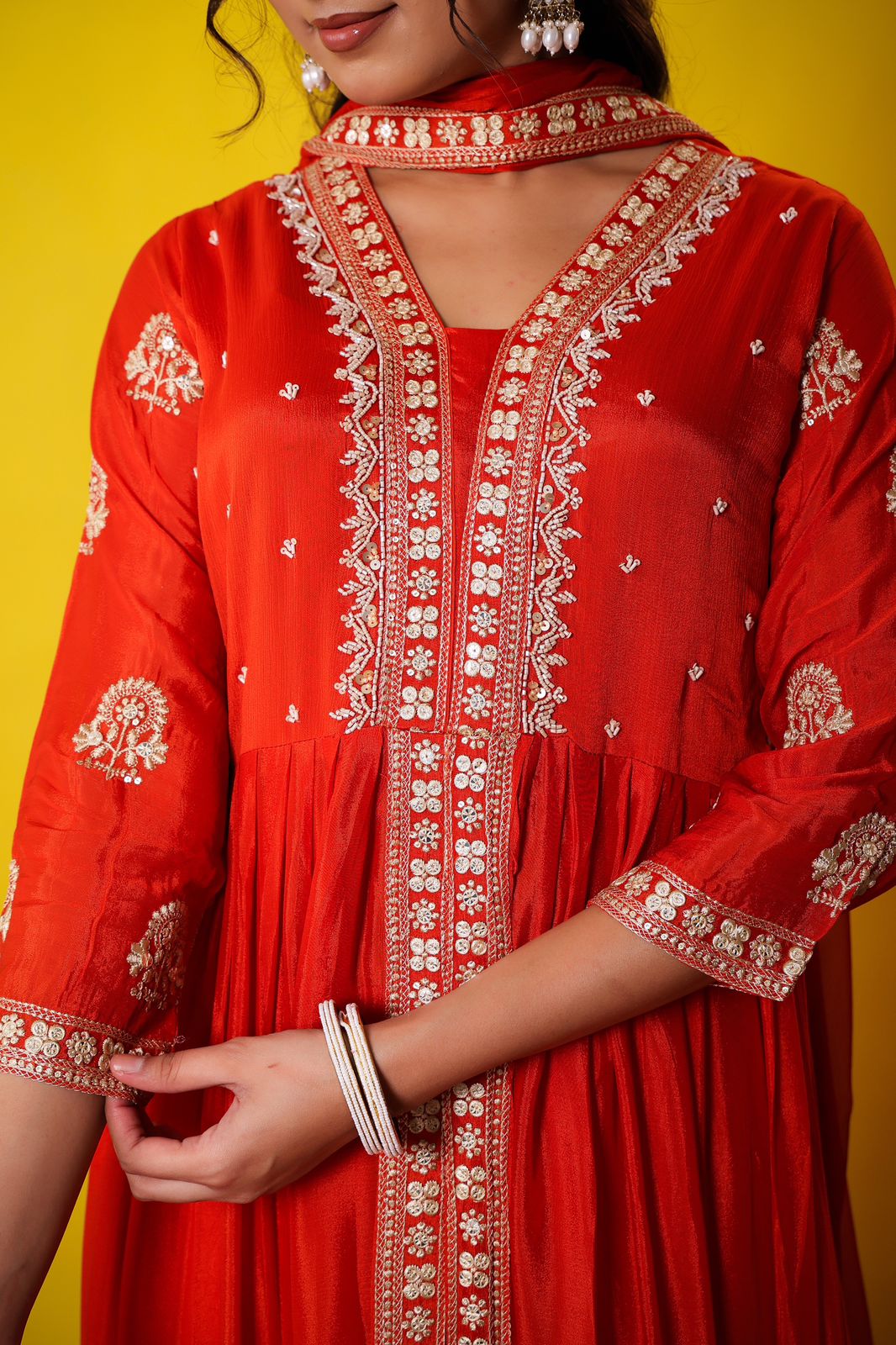 Pure chinon hand work suit set in orange