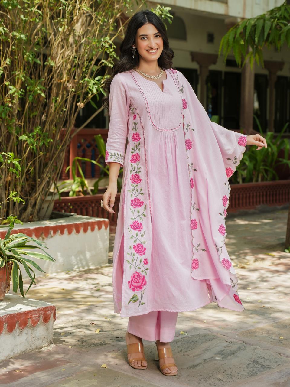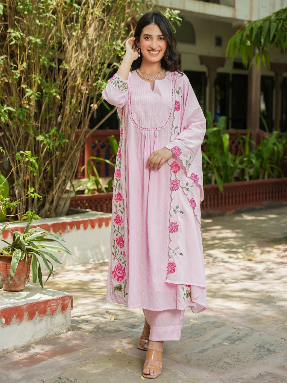 Pretty cotton embroidered suit set