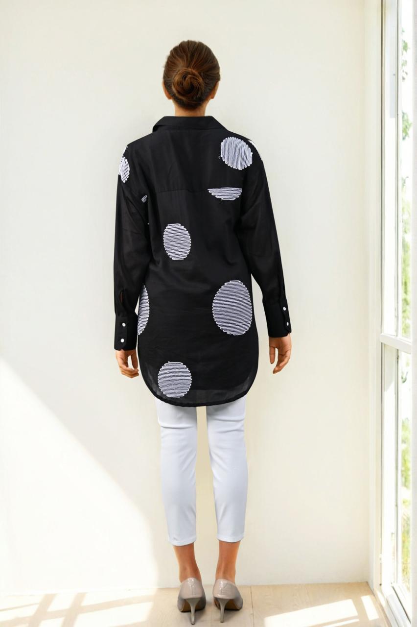 Pretty Mul cotton embroidered lining high low shirt