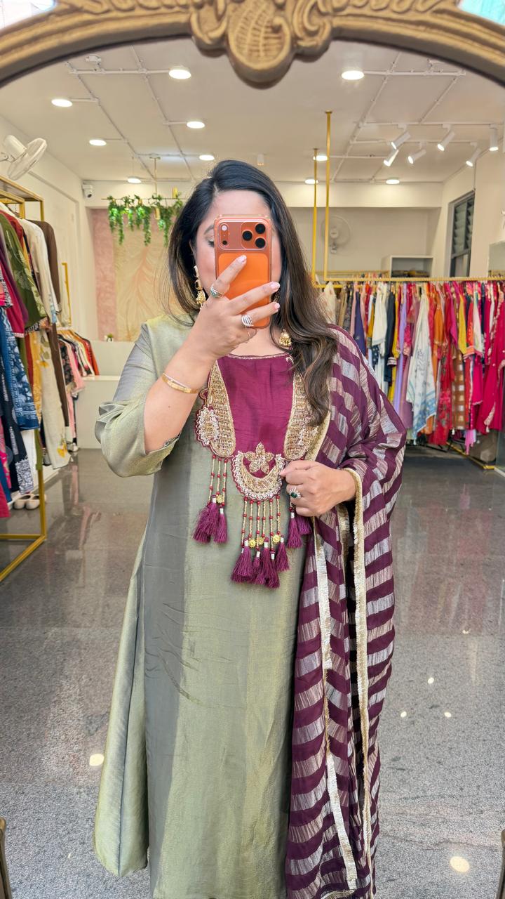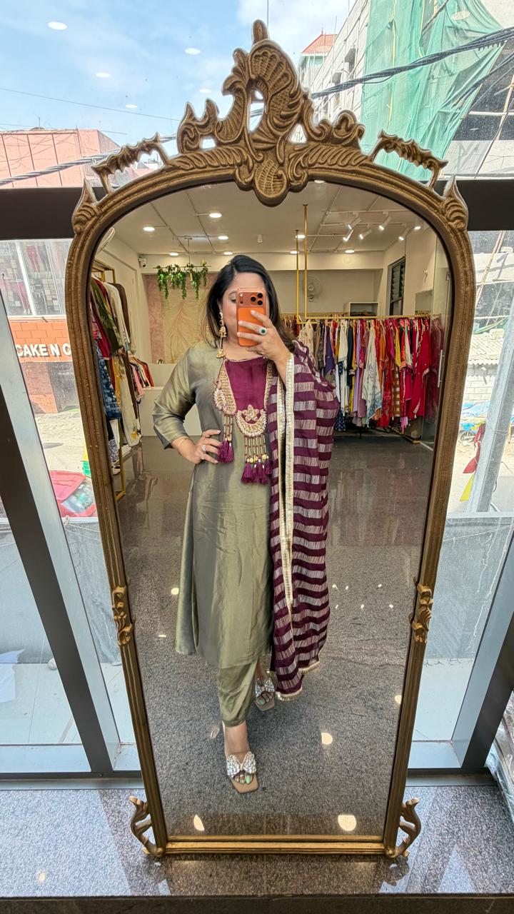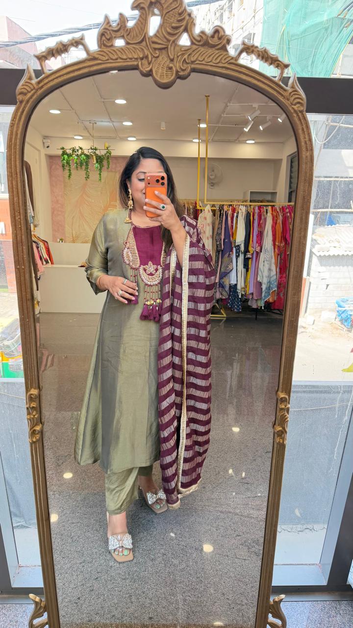 Premium glass tissue lining suit set slim fit but extra margin available in green