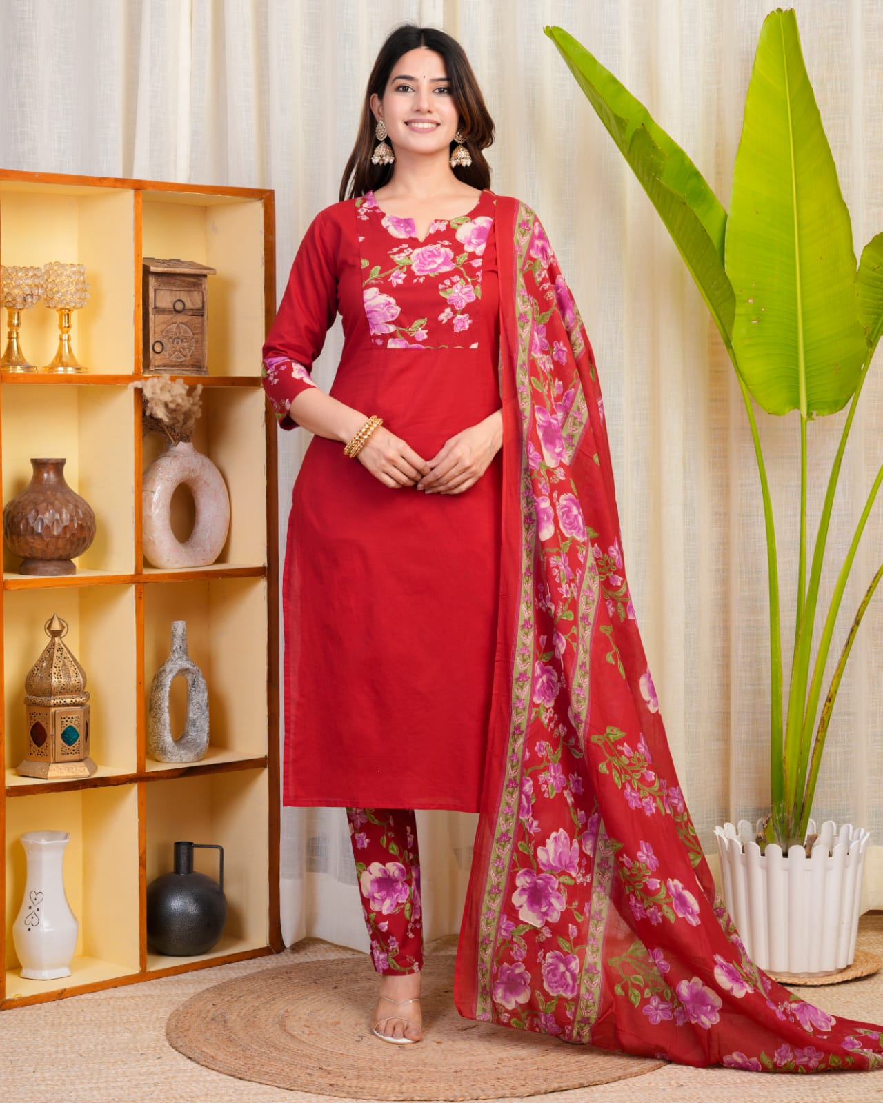Pretty cotton full suit set in red