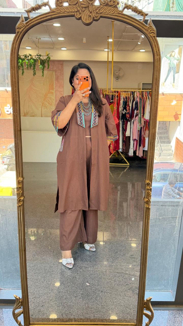 Super smart designer jacket paired with plazzo and a crop top